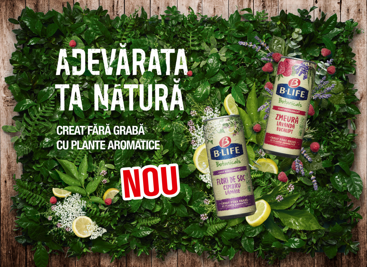 Display B-Life: destinat utilizarii in hyper/supermarket, decoruri temporare . Bazat pe elemente structurale din aluminiu, placare cu lemn furniruit si decor frunze/plante artificiale, butaforii 3d – doza , litere volumetrice, polite decupate CNC din placaj fag, nuantare cu baituri pe baza de apa, etc.